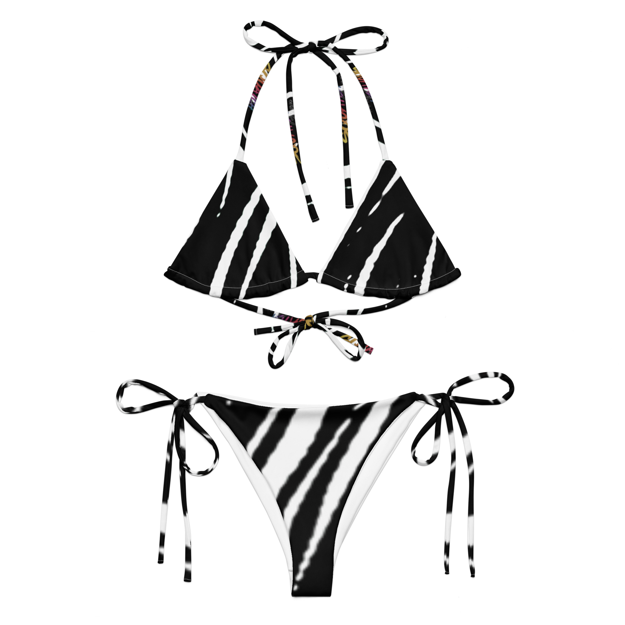• To make your All-Over Print Recycled String Bikini last longer, thoroughly rinse it off after each use and get rid of any chlorine/salt residue.